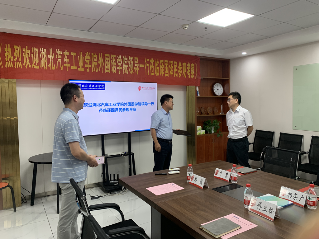 本网讯(文/王敬霞)为开拓校企合作、产教融合新局面,拓宽学生就业岗位、储备实习岗位,加强校企供需精准对接,9月14日至9月15日,外国语学院院长朱战炜、副院长杨荣广、英语系主任杨成等一行5人赴中科凡语(武汉)科技有限公司、传神语联网网络科技股份有限公司、武汉译国译民翻译服务有限公司走访参观,并受到了各企业负责人的热情接待。