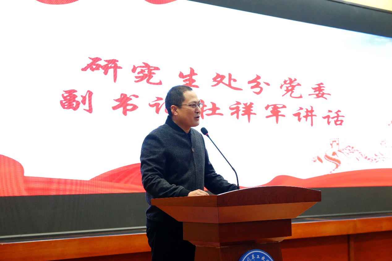 杜祥军对过去一年研究生会的工作表示肯定,并寄语第八届研究生会:学生干部要善于沟通、勇于创新,保持工作激情和为同学服务的热情。杜祥军指出,学生干部参加学生工作,是丰富个人能力,提高综合素质的途径。学生干部要着重培养“四心”,一是有强烈的责任心,勇于承担急难险重的任务和责任;二是保持求知心,勇于开拓创新,探索未来;三是保持耐心,克服浮躁心态;四是坚持恒心,百败而志不折。在学习、科研、做学生工作等各个方面要有“衣带渐宽终不悔”的勇气与毅力。