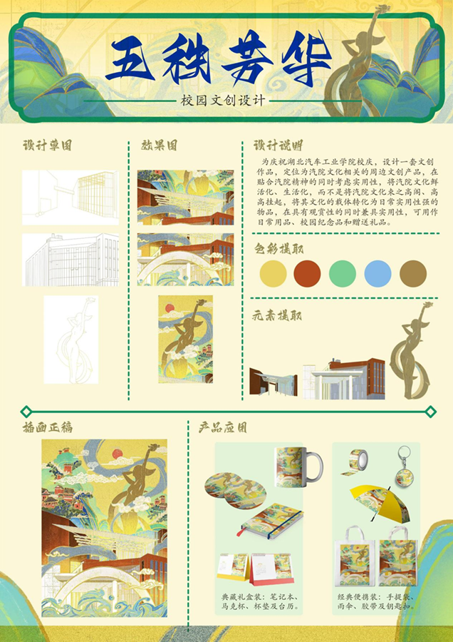 图为校庆杯文创赛道五秩芳华系列校园文创团队作品
