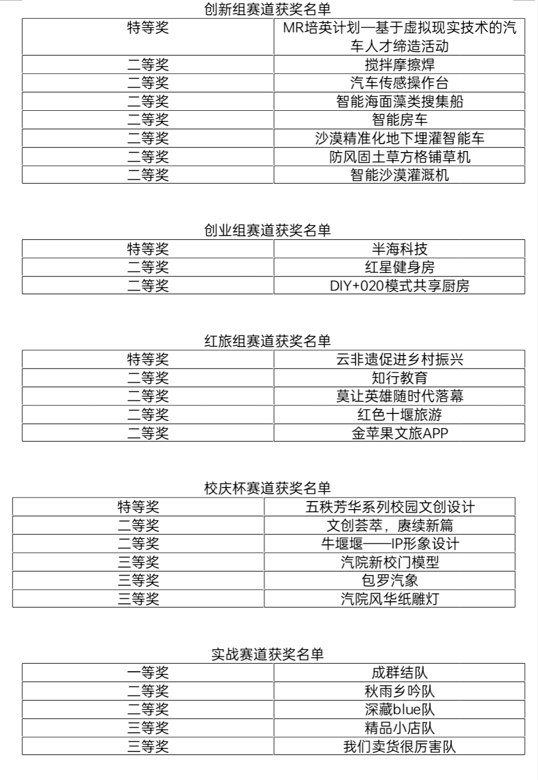 本次大赛分为创新组、创业组和红旅组赛道总决赛流程分为项目路演展示、选手答辩、评委点评三个环节。受疫情影响,选手们通过会议路演形式参赛。选手答辩环节中,评委指出同学们要解放思想、积极探索,同时关注所处行业、市场规模、商业模式和盈利模式,经过评委们现场打分评审,各赛道获奖名单如下: