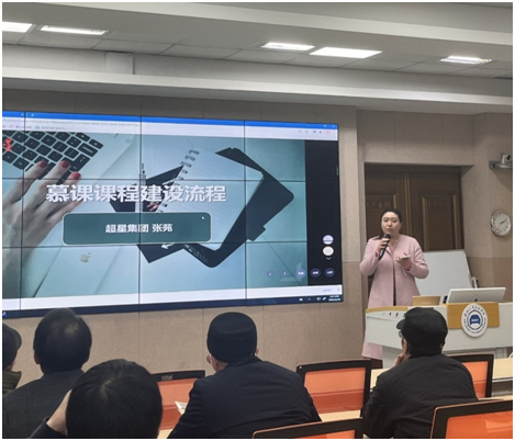 培训会上,来自武汉超星数图教育科技有限公司顾问张苑就课程选题、组建团队、课程设计、撰写脚本、课程拍摄、后期制作以及课程上线等方面进行了详尽的介绍,使教师们对于课程资源建设的各个环节有了全面的了解。