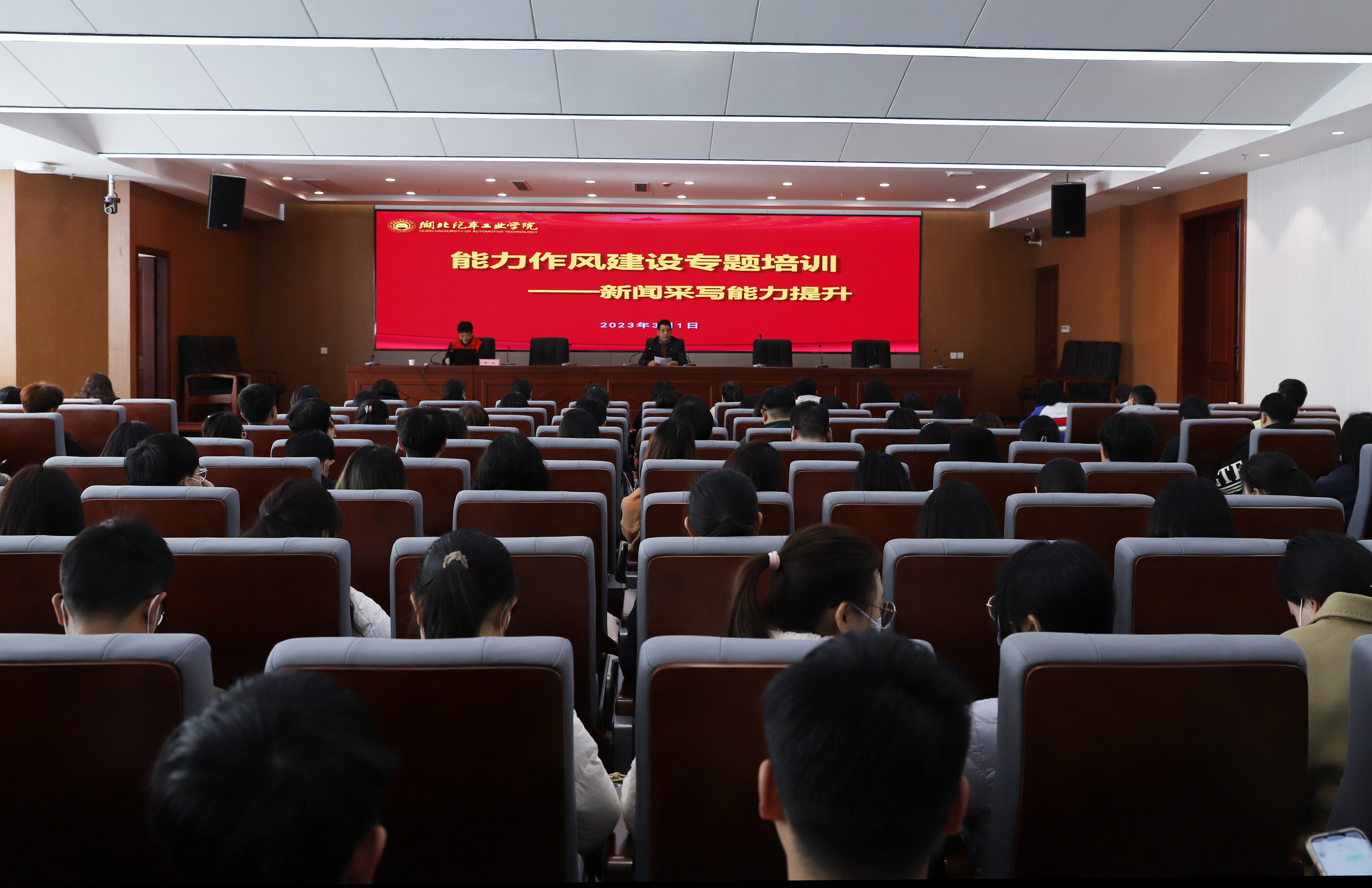 本网讯(文/图 邓玉洁)3月1日下午,校党政办、机关分党委、宣传部联合举办新闻采写能力提升培训班,特邀请十堰日报社主任记者朱江来校开展培训讲座。产教大楼三楼报告厅座无虚席,机关分党委及各支部宣传委员、各二级单位、部门通讯员、学生记者团成员以及新闻爱好者,周家沟社区全体干部以及驻地单位相关干部等200余人通过线下或线上的方式参加。讲座由党委宣传部部长计毅波主持。