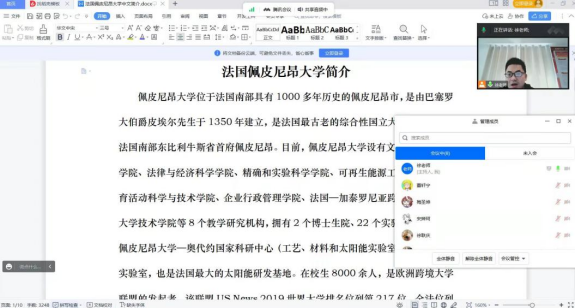 本网讯(图/文 徐跃廷)2023年学校与法国佩皮尼昂大学“3/4+3”项目的首轮选拔工作即将在本月下旬开展,为增进参加选拔学生对选拔流程的进一步深入了解,增强自信心,4月16日下午,汽车工程师学院为我校今年参加选拔的大三、大四学生组织开展了线上项目解答会,会议由汽车工程师学院行政秘书徐跃廷主持。