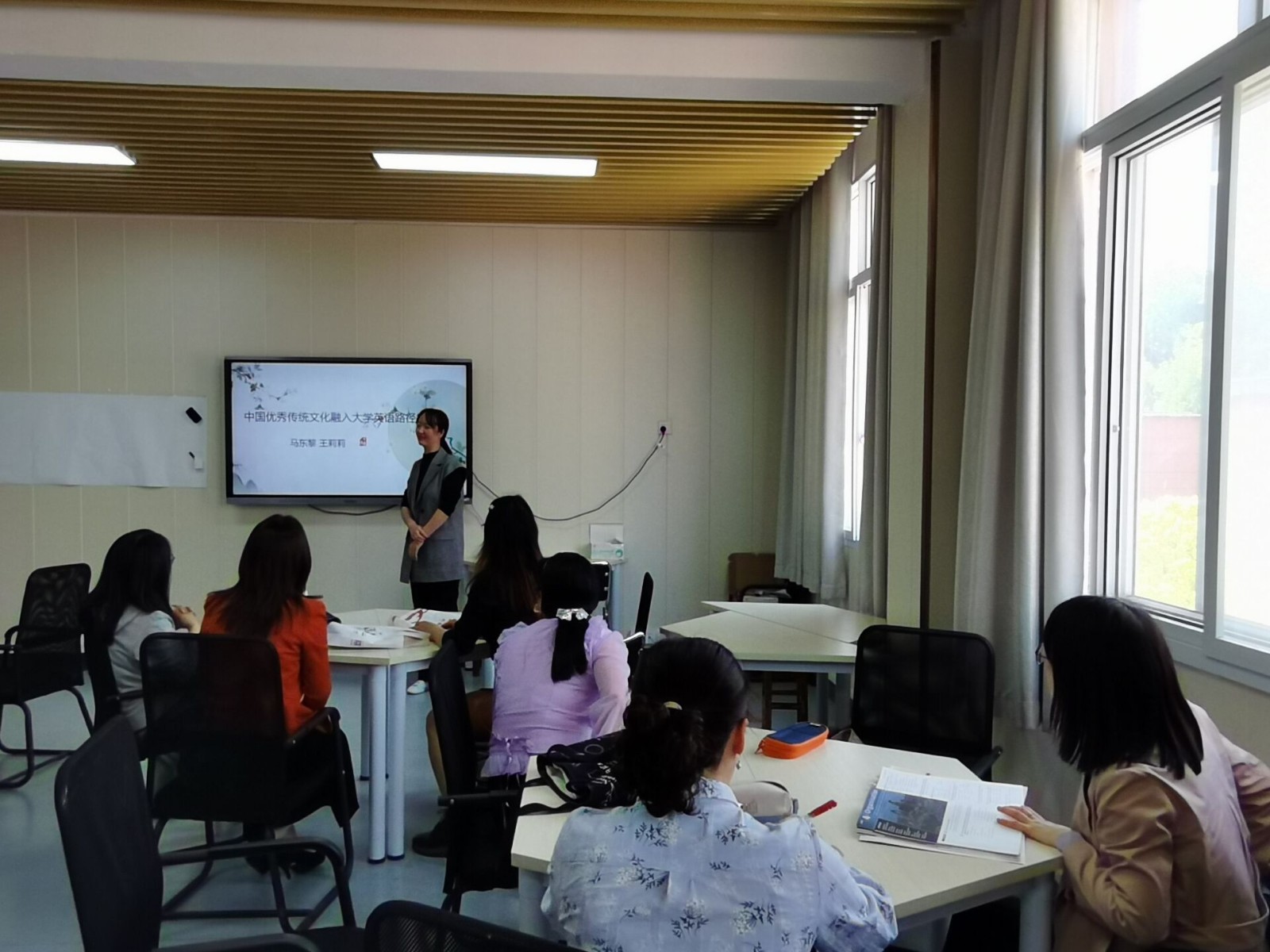 本网讯(文/图 王莉莉)4月10日下午,外国语学院公共外语教学部在3605教室开展了主题为“中国优秀传统文化融入大学英语课堂的实践”的教学法活动,此次教学法活动由马东黎老师主讲,全体大学英语教师参加。