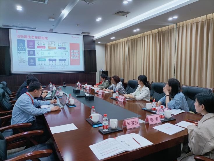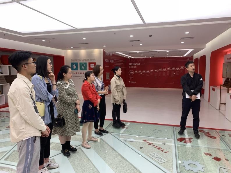 在传神武汉总部教育事业部资源总监靳伟、副总裁闫栗丽及相关部门负责人的陪同下,学院师生一行参观了该公司技术部门、笔译工作间、未来空间创业孵化基地、影视翻译基地等工作场所,靳伟总监重点就语联网翻译平台、智能翻译教学与创新实践平台、one class平台等进行了演示介绍,演示过程中,双方不断就相关问题进行了交流。