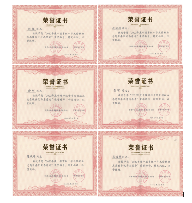 活动中,市红十字会庹丽主任为刘红同学颁发“2022年度十堰市红十字无偿献血志愿服务十佳志愿者”荣誉证书。市无偿献血志愿服务队袁亮根队长为余珂、马浩然、龚琛、敖运利和陈欣瑜等五名同学颁发“2022年度十堰市红十会无偿献血志愿服务优秀志愿者”荣誉证书。随后,市红十字志愿服务队胡利民队长对科技学院红十字志愿服务分队长期支持并协助献血车进校园、献血知识宣讲、社会实践等活动表示衷心的感谢,对志愿者们在服务过程中展现出的严谨细致、认真负责的态度给予高度赞扬。