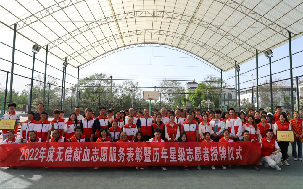 本网讯(文/赵志恒) 4月15日,十堰市红十字会和中心血站联合举办2022年度无偿献血志愿服务表彰暨历年星级志愿者授牌仪式,科技学院红十字志愿服务分队受邀参加。