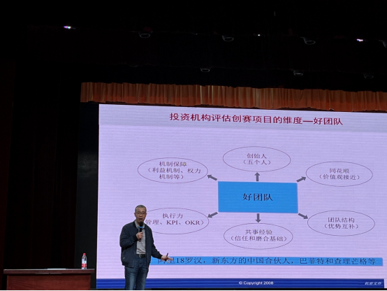 会上,金国巍先生以《投资者视角下参赛项目的评价维度》,从宏观环境、适合大学生群体的项目特征、投资机构评估创赛的维度(好团队、大市场、产品为王、模式优先、数据佐证)、产品项目亮点等几个方面进行了讲解。金先生指出,无创新不创业,团队需要不断探索新商业、新营销模式。讲座之后,金先生对师生在大赛中所面临的困境和提出的问题进行了专业的指导。
