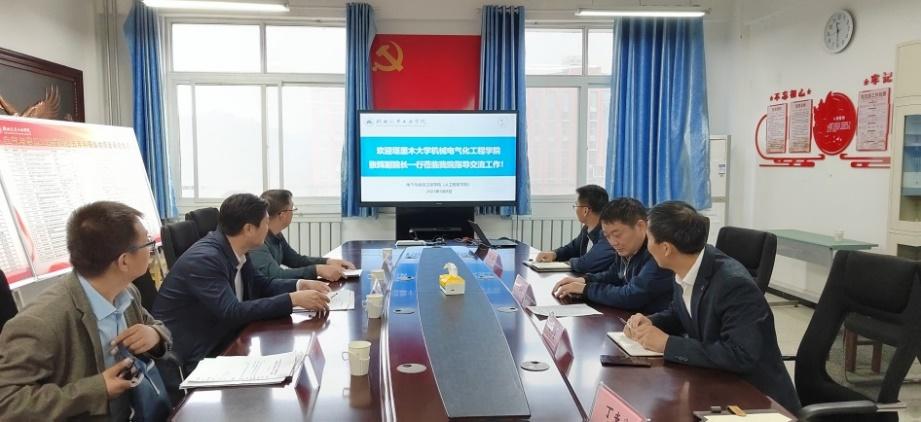 本网讯(文/丁光惠、周煜哲)5月9日上午,新疆塔里木大学机械电气化工程学院书记张洪洲一行来到电气与信息工程学院调研交流并进行招聘宣讲。电气与信息工程学院院长黄海波、副院长周学良及系部相关老师参加了本次调研交流活动。
