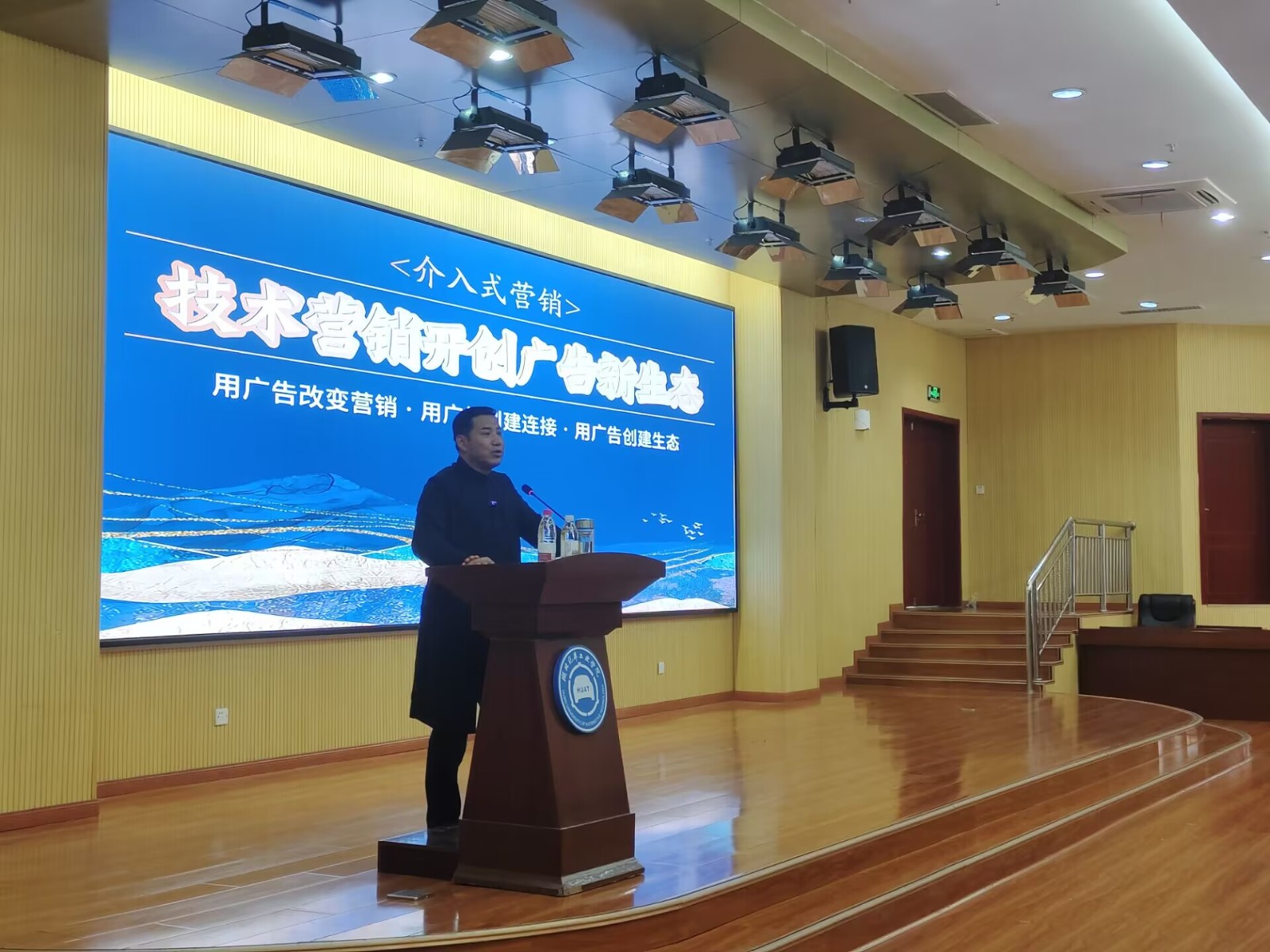 牛云在讲座中通过理论与实践相结合的方式为同学们展现了广告设计市场营销的魅力,根据具体问题具体分析,提出四维广告营销学理论,指出广告行业需由定位营销学向技术营销学转型。同学们面对牛云老师提出的问题也纷纷举手互动,表达自己的想法与观点。通过聆听讲座,在场的教师与学生对广告设计营销领域的基本概念、营销五段论和构建私域流量池等知识都有了更加深入的了解和认识。