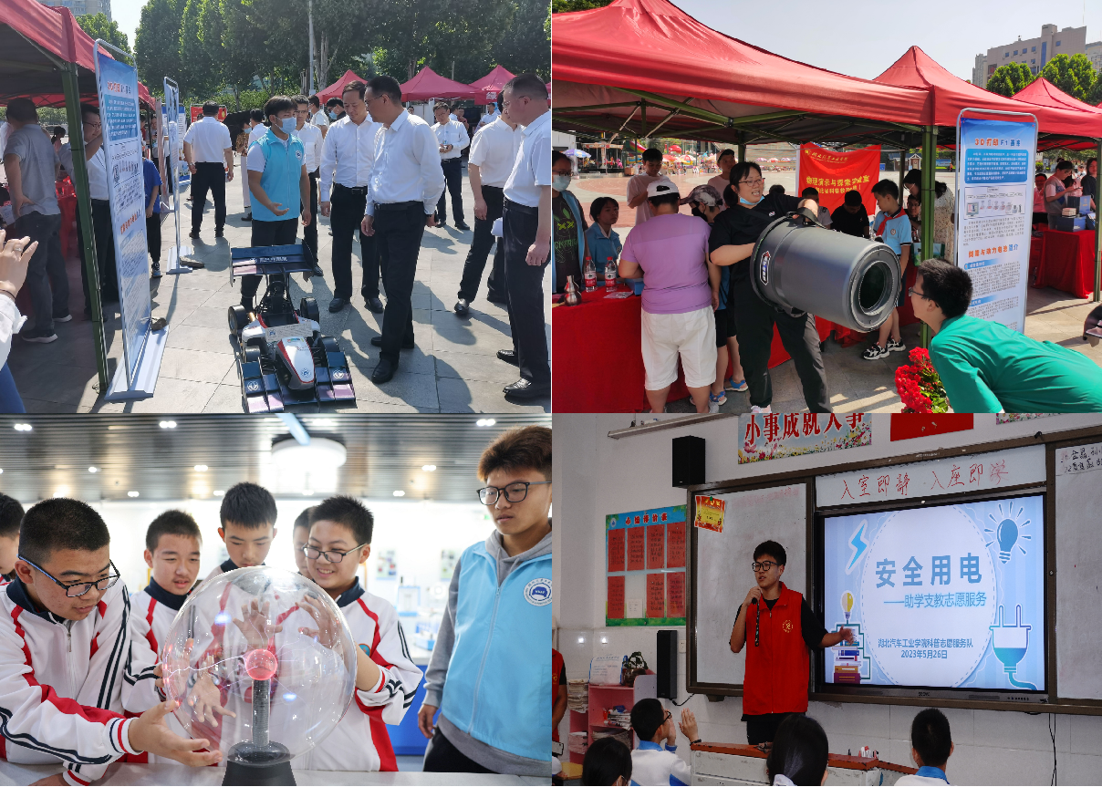 5月20日上午,由物理演示与探索实验室负责人胡永金带队参加了2023年十堰市科技活动周启动式活动,在六堰人民广场展示了我校特色的赛车模型、新能源汽车动力电池和科普教育基地的科技展品,吸引了众多青少年观摩和体验,深得在场的各位领导和社会人士好评。5月24日上午,物理演示与探索实验室进行了一场“享实验之趣,赏物理之美”的公众开放日活动,接待了十堰市东风五中七年级学生来实验室参观和体验,让中学生近距离感受到了物理实验的乐趣,探索了“神秘”仪器背后的科学奥秘。5月26日上午,我校科普志愿队通过“走出去”方式,深入十堰市41小学课堂,给小学生们作了一场以《安全用电》为题的科普教育讲座,大大提升了小学生的安全用电知识。