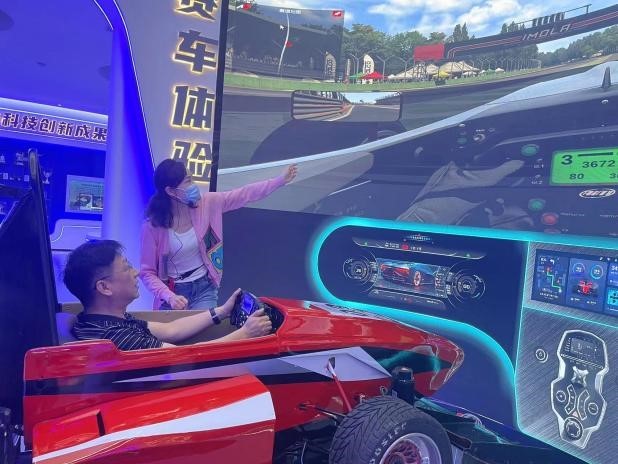 在科技创新展示交流中心,张焜一行参观了学校科研团队围绕汽车智能化、网联化、轻量化、电动化领域形成的标志性科技成果,并饶有兴致地体验了学校智能网联团队与东风悦享科技有限公司联合研发的Sharing-box智能无人车,试驾了HUAT车队大学生手工打造的方程式赛车。