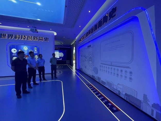 王保华对张焜副局长一行的到来表示了热烈欢迎,并陪同他们到学校校史馆和产教大楼参观。在校史馆,王保华介绍了学校的发展历史和办学特色,重点介绍了学校在对接产业链设置专业和深化产教融合,推动市校企合作、一体化协同育人方面开展的创新工作。随后,一行人在校史馆讲解人的带领下进行全面参观,对学校自1972年创办以来50多年的发展历程和辉煌成就有了全面、清晰的认识。