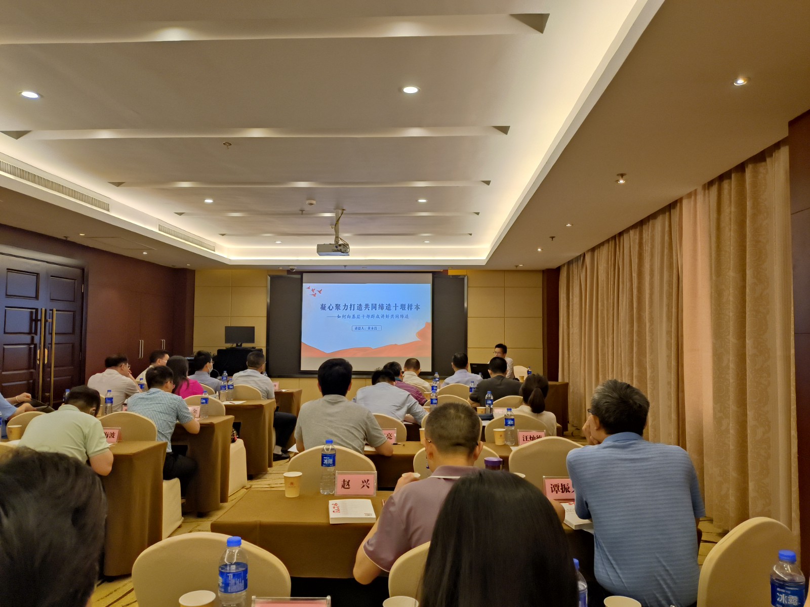 黄永昌以《凝心聚力打造共同缔造十堰样本——如何向基层干部群众讲好共同缔造》为题展开示范宣讲,围绕紧扣政策文件,上接天线,彰显政治高度;跟踪学术前沿,经世致用,突出理论热度;把握社情民意,有的放矢,突出实践温度;学习先进做法,他山之石,体现借鉴效度;汲取传统智慧,知古鉴今,提升文化厚度;嵌入见闻感想,活学活用,增加宣贯亲和度六个方面,就如何向基层干部群众宣讲“流域综合治理和共同缔造”主题作了精彩的示范宣讲。
