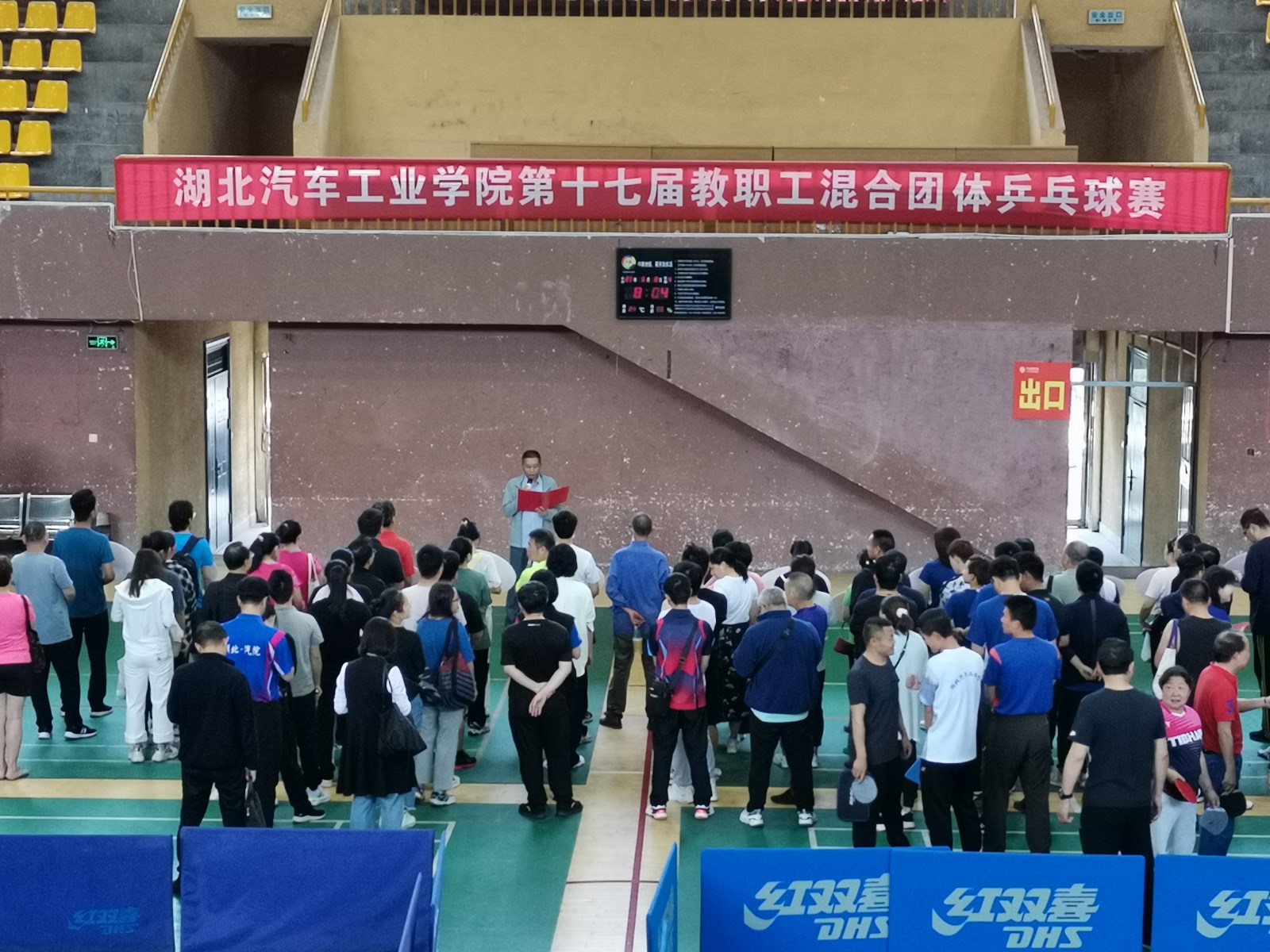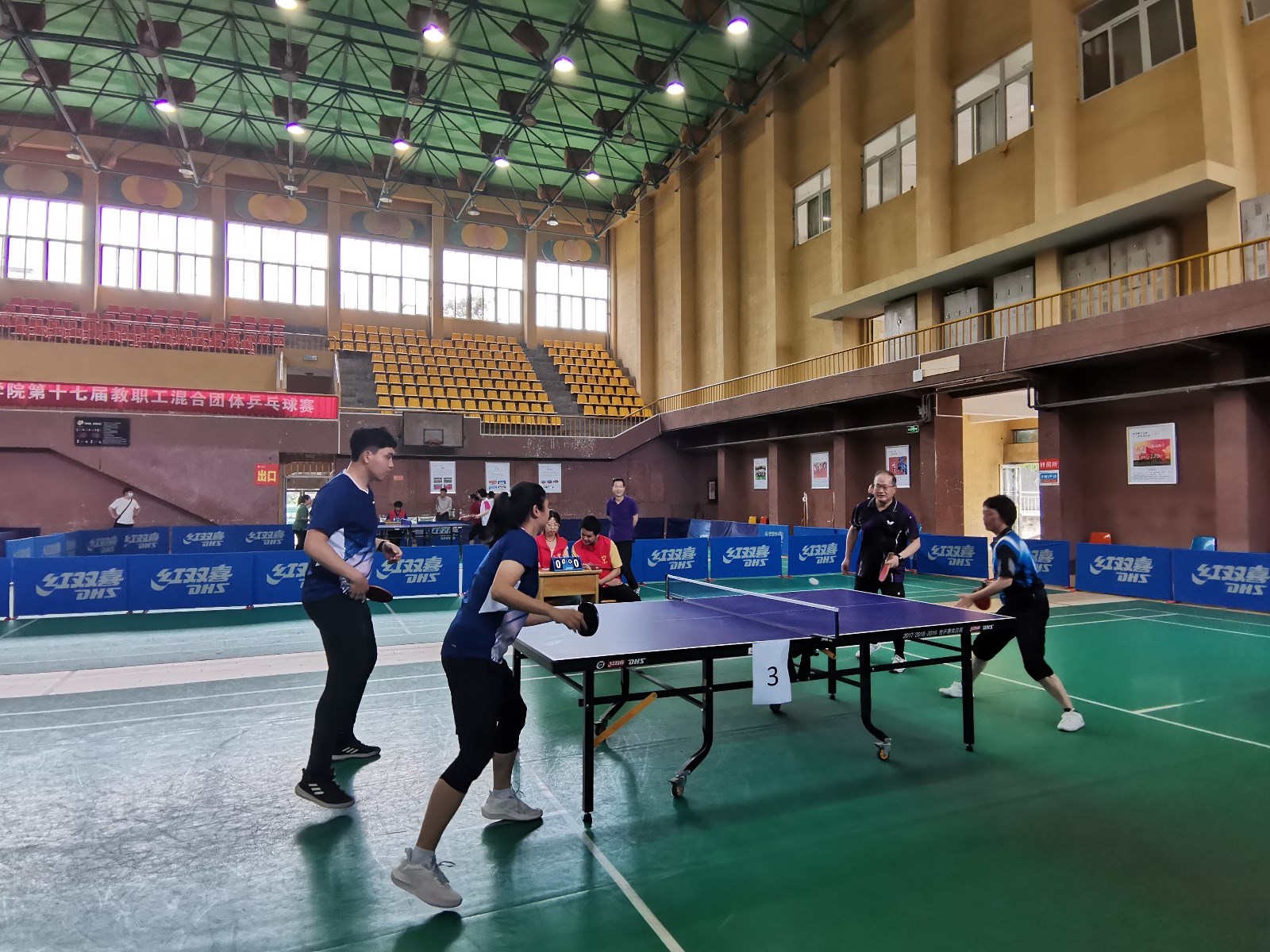 本网讯(文/图 张丽丽)6月8日,我校第十七届教职工混合团体乒乓球赛在体育馆圆满落冪。本次比赛由校工会主办、体育部承办,共有18支队伍180余名教职工参加。
