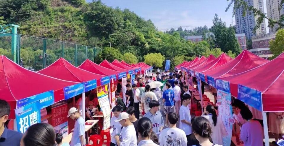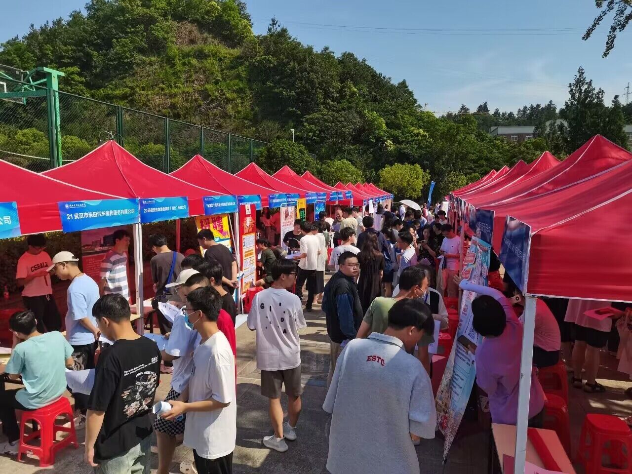本网讯(文/金涛)6月9上午,学校在汽车文化广场举办2023年“才聚荆楚·百县进百校”就业促进专项行动暨“才聚十堰 就在车城”湖北汽车工业学院大学生留堰专场招聘会。