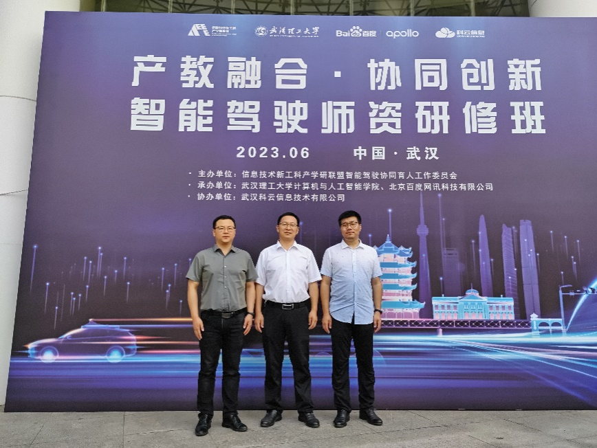 本网讯(图/文 朱政泽)6月10日,由信息技术新工科产学研联盟智能驾驶协同育人工作委员会主办,百度公司和武汉理工大学计算机与人工智能学院承办,武汉科云公司协办的“产教融合·协同创新”智能驾驶师资研修班师资培训活动圆满结束。本次培训线下研修部分由百度布道师及我校汽车工程师学院龚家元副院长共同担任,吸引了150多所高校的270多名老师参与学习。工程师学院邓召文副院长、教师朱政泽博士作为嘉宾参加了此次研修活动。