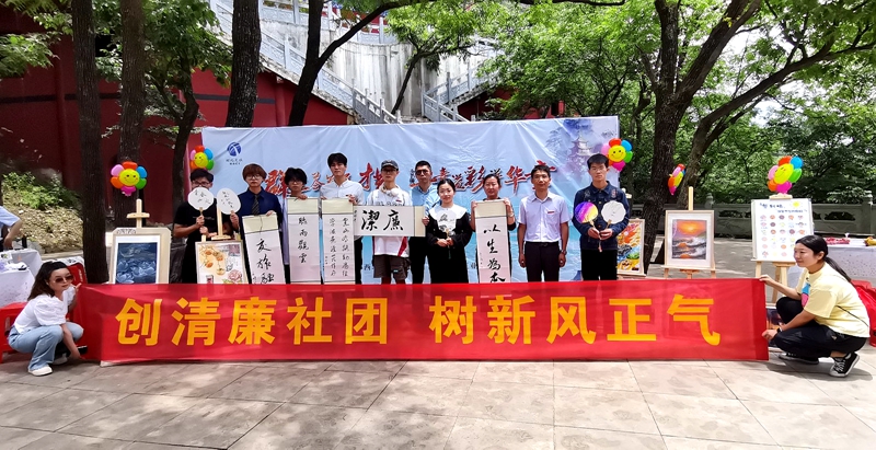 笔墨绘廉洁,书画扬清风。在大明峰,学校书画协会与山水艺社书画手工社团成员,共同开展“清廉文化”主题书画作品创作。大家挥毫泼墨,通过现场题字、采风作画等形式,现场创作了“廉洁”“以生为本”“莲花”等作品,在品赏优秀书画作品中感悟廉洁、接受教育,营造一种崇廉、倡廉、保廉的良好氛围。