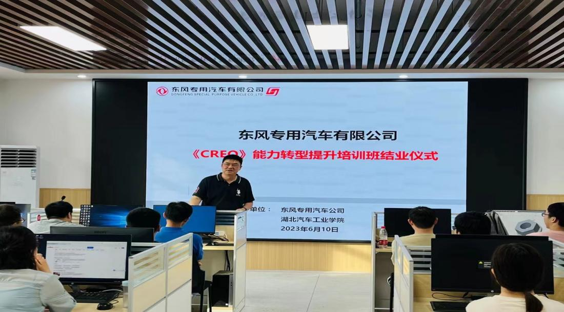 本网讯(文/图 王文静)6月10日,东风专汽CREO能力转型提升培训班在湖北汽车工业学院关心下一代工作委员会(关工委)见证下,举行了结业仪式。结业仪式在湖北汽车工业学院产教融合大楼举行。此举标志着我校与东风公司在产学研合作方面取得了重大进展,标志着关工委将关心下一代工作进一步落到了实处。