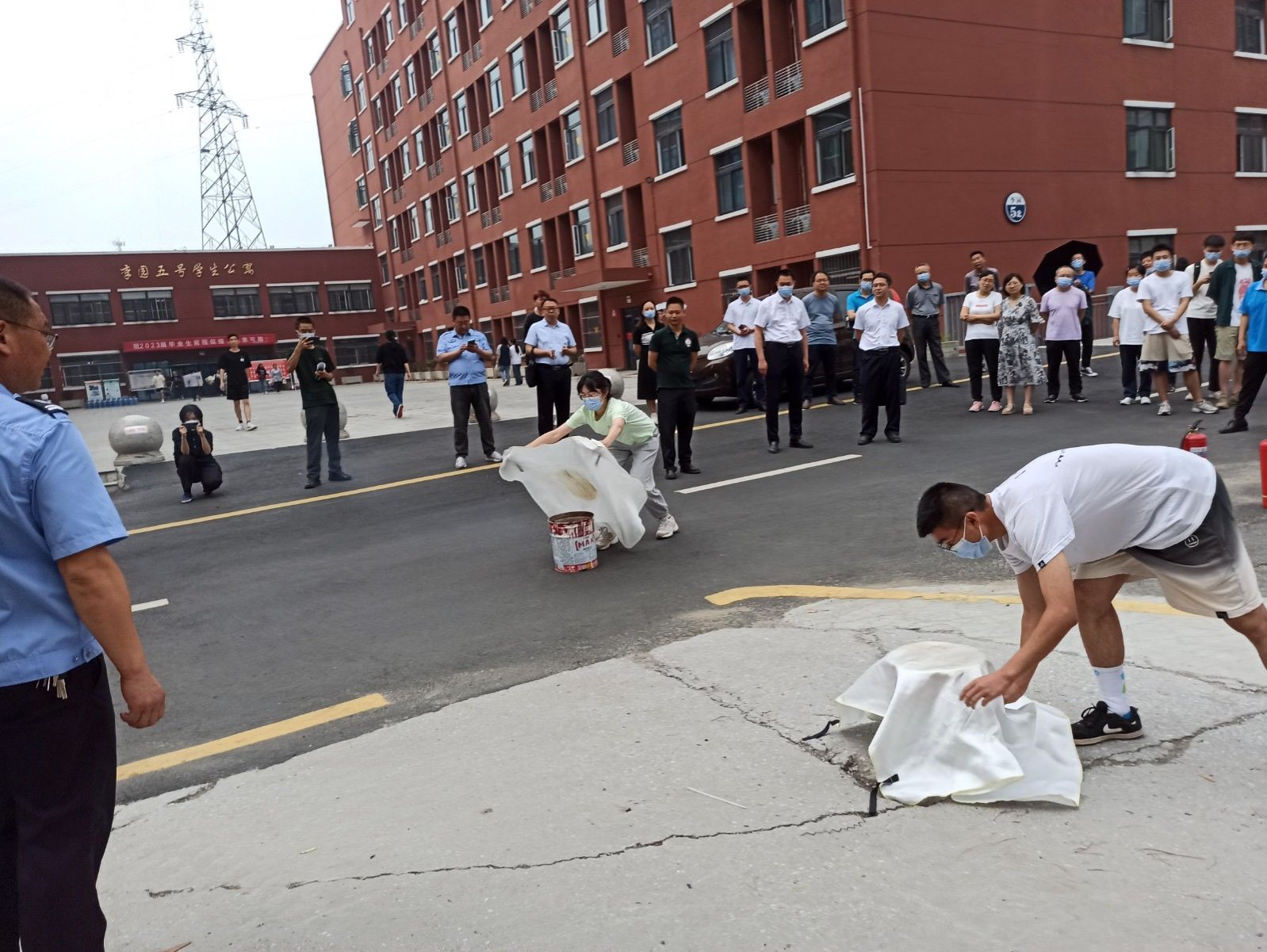 第四阶段是灭火实操。在实验楼下,保卫处工作人员向师生演示了灭火毯、防火器使用方法和注意事项,并组织师生亲身体验了灭火器、灭火毯、消火栓灭火实操。至此本次实验室安全应急演练及安全知识展系列活动圆满完成。(审稿 毕丽芳)