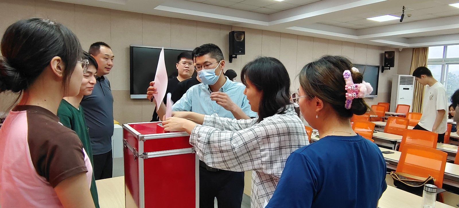 在监票人魏伟同志的组织监督下,与会正式党员投下了神圣的一票。经党员代表投票、计票人统计、监票人现场公布计票结果,王新、吕文卉、朱炜、陈梦燕、黄进涛等5位同志当选为艺术与设计学院委员会新一届委员。