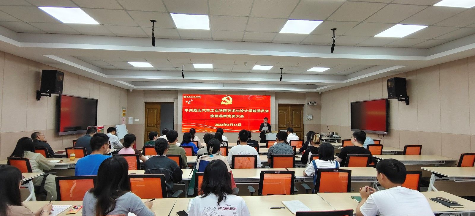 本网讯(文/图 陈梦燕 王龙飞)6月16日下午,中共湖北汽车工业学院艺术与设计学院委员会在第一教学楼1305报告厅召开换届选举大会,大会由分党委副书记王新主持,全体教职工党员和学生党员共计41人参会。
