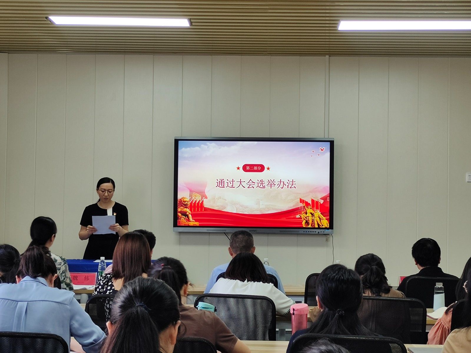 本网讯(文/魏院珍)6月19日下午,外国语学院在学院3605教室召开全体党员大会,选举新一届分党委委员,校工会主席陈海峰出席大会。会议由学院院长杨荣广主持。