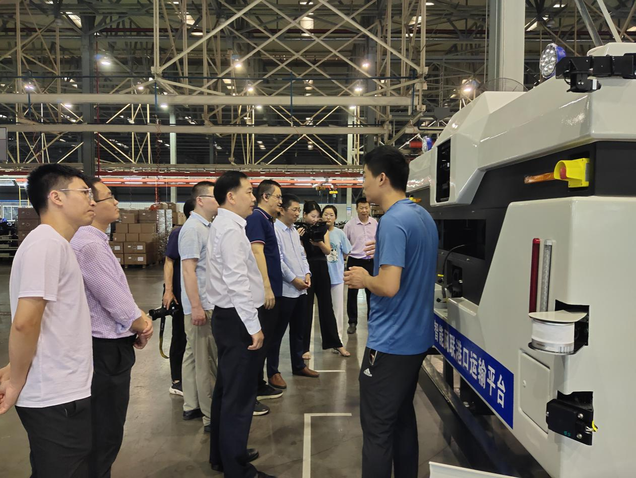 在三环工业园,湖北三环汽车有限公司副总工程师燕飞热情欢迎了与会人员,并对公司生产运营、在建项目情况进行了详细介绍。与会人员对“新能源智能网联港口汽车运输平台”给予极大的评价。高清平鼓励企业要抢抓政策机遇,坚持创新驱动和市场牵引相结合,发挥企业研发优势,不断激发新能源汽车产业发展新活力。