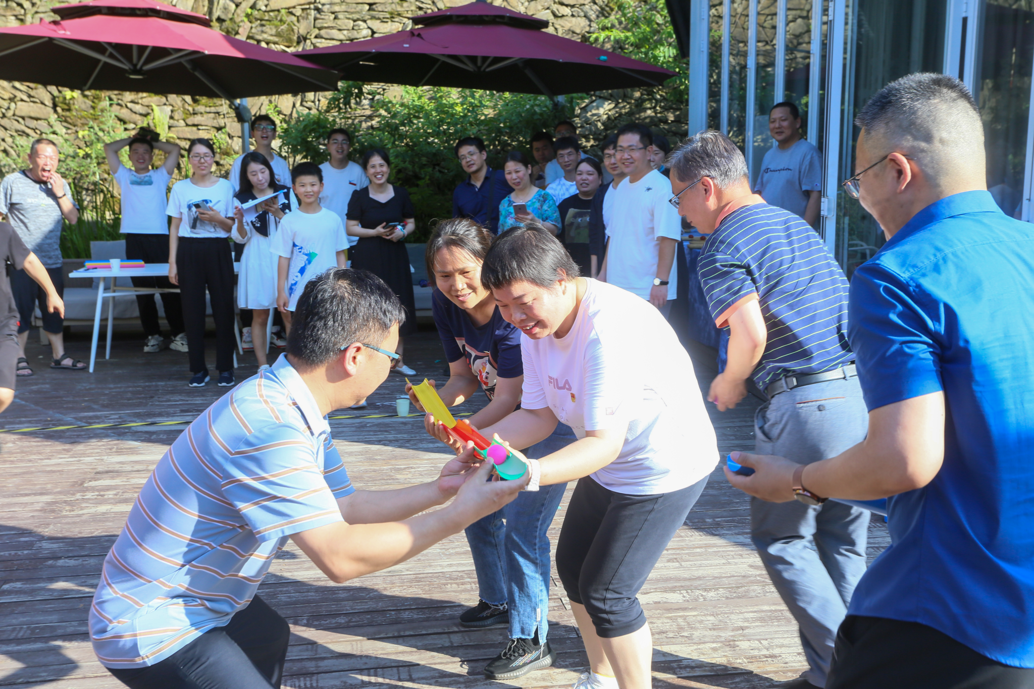 在轻松愉快的“拍拿放”破冰游戏后,全体党员以支部为单位分成五组,通过党史知识竞赛和红色趣味运动会,以赛促学,以学铸魂。在党史知识竞赛环节,必答题“步步为营”、选答题“运筹帷幄”、抢答题“尖峰对决”三个赛段环环相扣、渐次推进。师生共同展开了速度与脑力的精彩角逐,丰富的知识储备、灵活的反应能力,赢得现场阵阵掌声和欢呼。