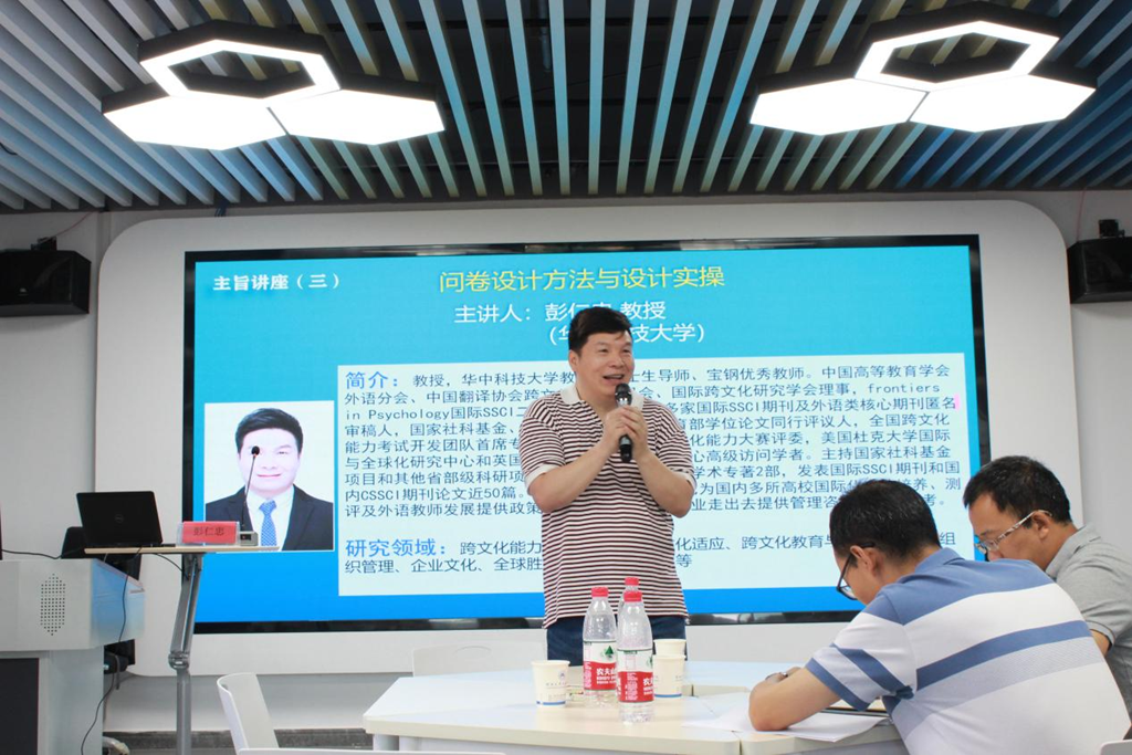 期间,外国语学院广大教师先后聆听了三场专家专题报告:英国华威大学文化与传播学博士韩瑜主讲的“质性研究方法与软件实操”;英国爱丁堡大学教育学博士、华中师范大学外国语学院英语系教授、博士生导师、外国语学院外语教师教育研究中心主任、“荆楚名师”专家委员会委员闫春梅教授主讲的“行动研究理念与研究设计实操”以及华中科技大学教授、博士生导师、Frontiers in Psychology 国际 SSCI 二区期刊客座主编彭仁忠教授主讲的“问卷设计方法与设计实操”。