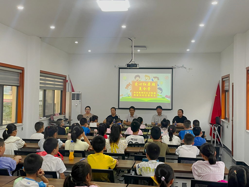 会上,周家沟社区党委书记汪安丽致辞,对踊跃报名参加爱心夏令营活动的小朋友们表示热烈的欢迎,对湖北汽车工业学院给予社区的支持表示衷心的感谢;表示社区将搭建好共同缔造美好生活的平台,为夏令营及其他活动的开展提供服务。