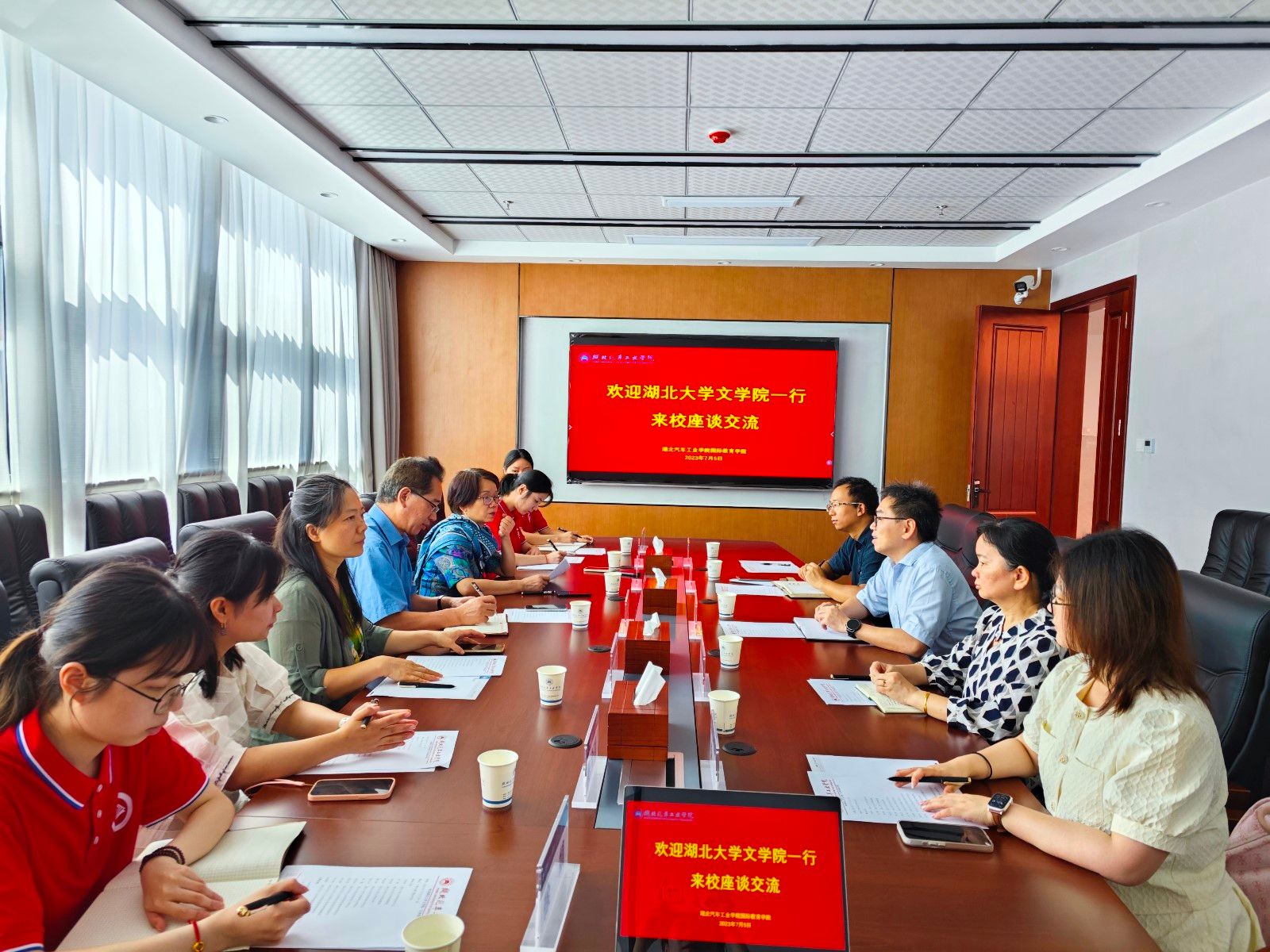 本网讯(文/张婷婷)7月5日上午,湖北大学文学院万明明书记一行7人来我校座谈交流,国际教育学院和外国语学院参加了座谈会。