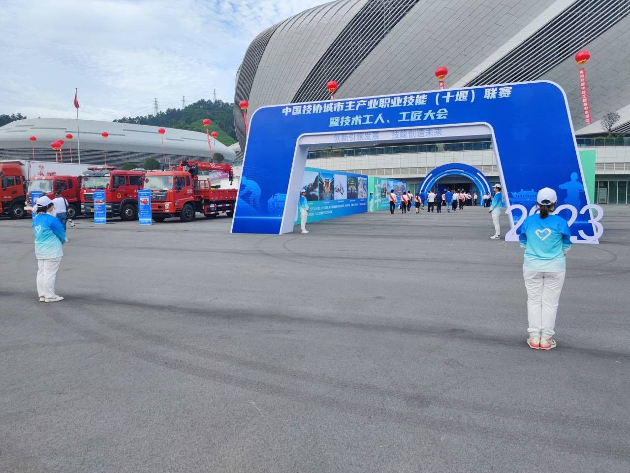 本网讯(文/图 刘仁君)7月5日,2023年中国技协城市主产业职业技能(十堰)联赛暨技术工人、工匠大会在十堰盛大开幕。此次赛事由中国职工技术协会,十堰市委、市政府,东风汽车集团有限公司,湖北省总工会,湖北省人社厅联合主办。7月3日,来自北京、上海、吉林、青岛等地的百余名参赛选手、裁判、领队就已陆续抵达十堰。这一天,湖北汽车工业学院艺术与设计学院的三十名优秀志愿者也培训上岗了。