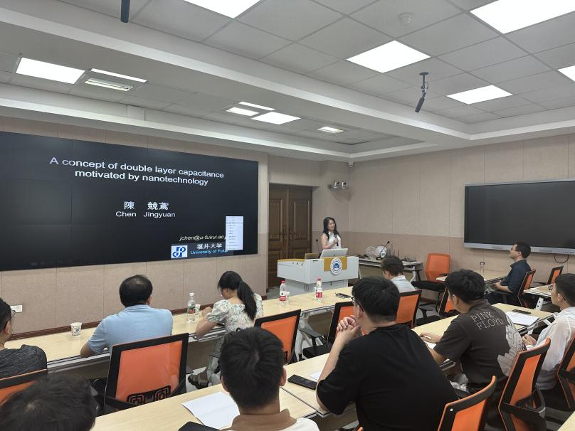 讲座中,陈竞鸢凭借对纳米技术的深刻理解,扎实的理论功底,以实验和理论相结合的方式,为我们详细阐述了双电层的组成和结构,进一步丰富了双电层的概念,为纳米尺度上超级电容器的储能机理提供了深刻的见解。