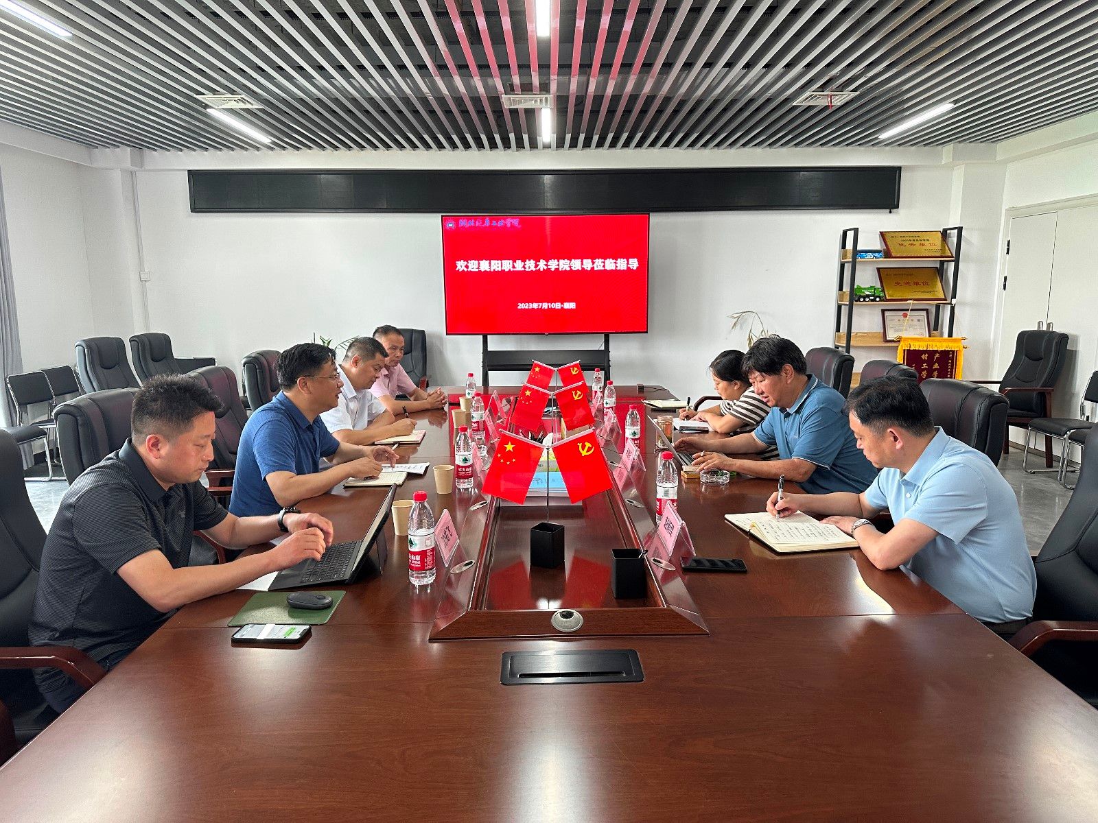 本网讯(文/图 尹雪婷)7月10日下午,襄阳职业技术学院副校长耿保荃一行4人带队到襄阳产学研基地调研交流,并在基地会议室召开座谈会,座谈会由襄阳基地分党委书记、主任汤德强主持,基地副主任赵新军及教职工参加会议。