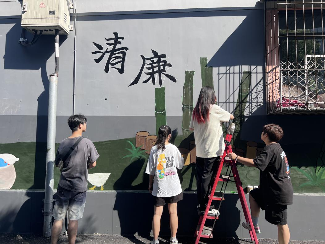 为深入宣讲党的二十大精神,开展基层社区廉政文化建设,艺术与设计学院联合周家沟社区开展了《“五亮五共”暖社区 “廉洁廉政”牢根基》主题墙绘志愿服务活动。学院老师带领学生们顶着炎炎烈日,发挥美术专业优势,对周家沟杨家院小区部分外墙进行彩绘,增添了小区艺术文化气息,让群众感受到了廉洁文化的魅力。正如艺术与设计学院分党委书记黄进涛所说“此次活动既促进了‘五亮五共’活动的开展,又推动了廉政文化进社区,让基层群众充分感受艺术魅力的同时,也受到廉洁教育。党员干部都要将‘明明白白做事,清清白白做人’牢牢记在心上、落实在行动中,践行好为人民服务的宗旨,持续为社区和师生开展好服务。”