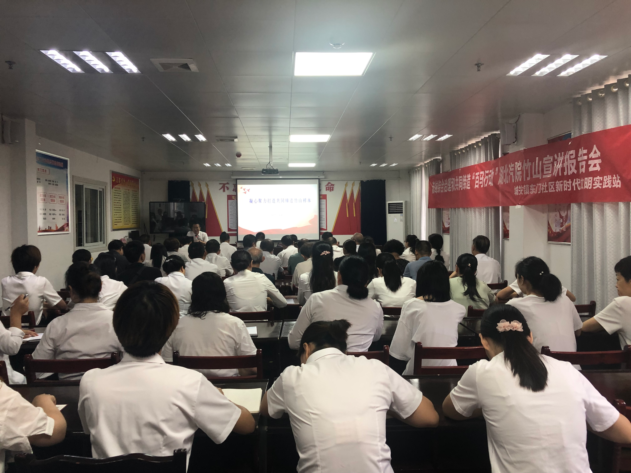 在竹山县城关镇共同缔造试点东门社区,马克思主义学院院长黄永昌以《凝心聚力打造共同缔造竹山样本》为题,结合竹山本地优秀精神文明实践,并围绕“紧扣政策文件,上接天线,彰显政治高度”“跟踪学术前沿,经世致用,突出理论热度”“把握社情民意,有的放矢,突出实践温度”“学习先进做法,他山之石,体现借鉴效度”“汲取传统智慧,知古鉴今,提升文化厚度”“探索特色亮点,活学活用,增加工作力度”六个方面展开宣讲。