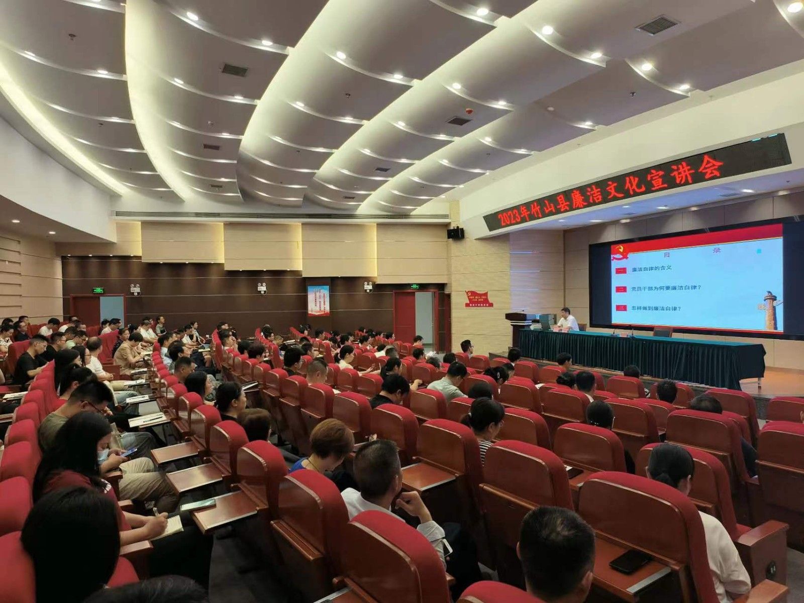 在竹山县新时代文明实践中心会场,湖北汽车工业学院马克思主义学院分党委书记、教授计毅波以《争做新时代廉洁自律的表率——谈党员干部的廉洁自律》为题,形象生动地阐释了新时代廉洁文化的丰富内涵、推进廉洁文化建设的方法路径。