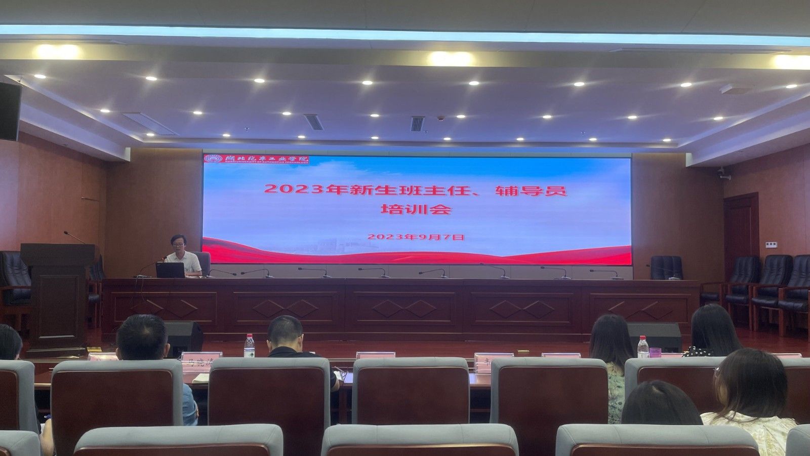 本网讯(文/图 朱晓妍)9月7日下午,学校在产教大楼三楼报告厅召开2023级新生班主任、辅导员培训会。学工部、团委、教务处、保卫处、研究生院负责人以及二级学院分党委副书记、新入职辅导员、2023级新生班班主任、辅导员、导生参与了此次培训。学工部副部长杜昕俊主持会议。