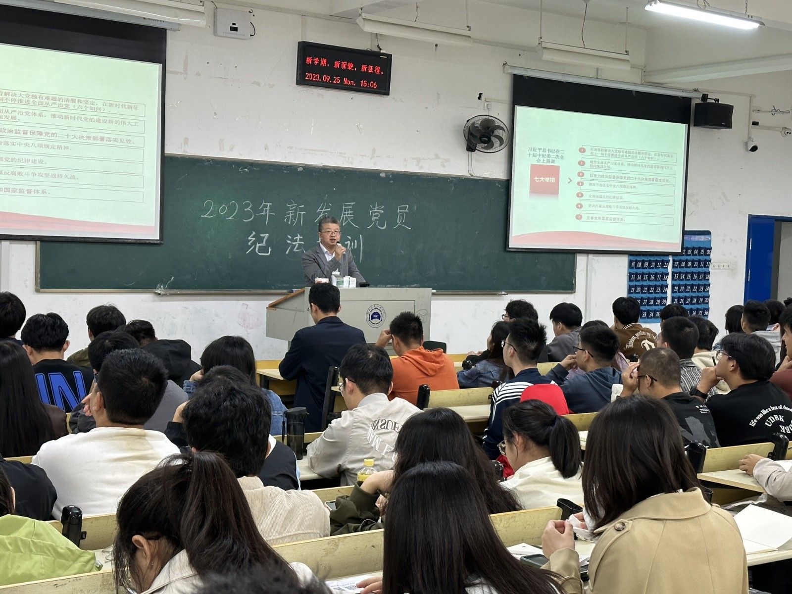 本网讯(文/图 张煜紫)为进一步加强理想信念教育,营造“清廉汽院”浓郁氛围,9月26日,我校新发展党员纪法教育专题培训在6111举行,200余名党员参加。