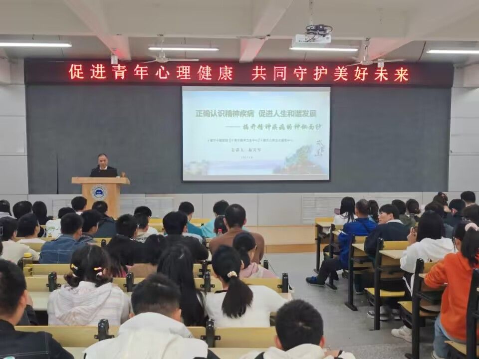 本网讯(文 晏冉/图 黄聪悰)为广泛宣传、普及心理健康和精神卫生知识,营造良好心理育人氛围,促进师生对精神卫生健康认知及身心健康,10月10日下午,学工部邀请十堰市中医医院精神卫生中心副主任易天军开展“正确认识精神疾病,促进青年心理健康”为主题的讲座,各二级学院副书记、全体辅导员及各年级学生代表参加讲座。