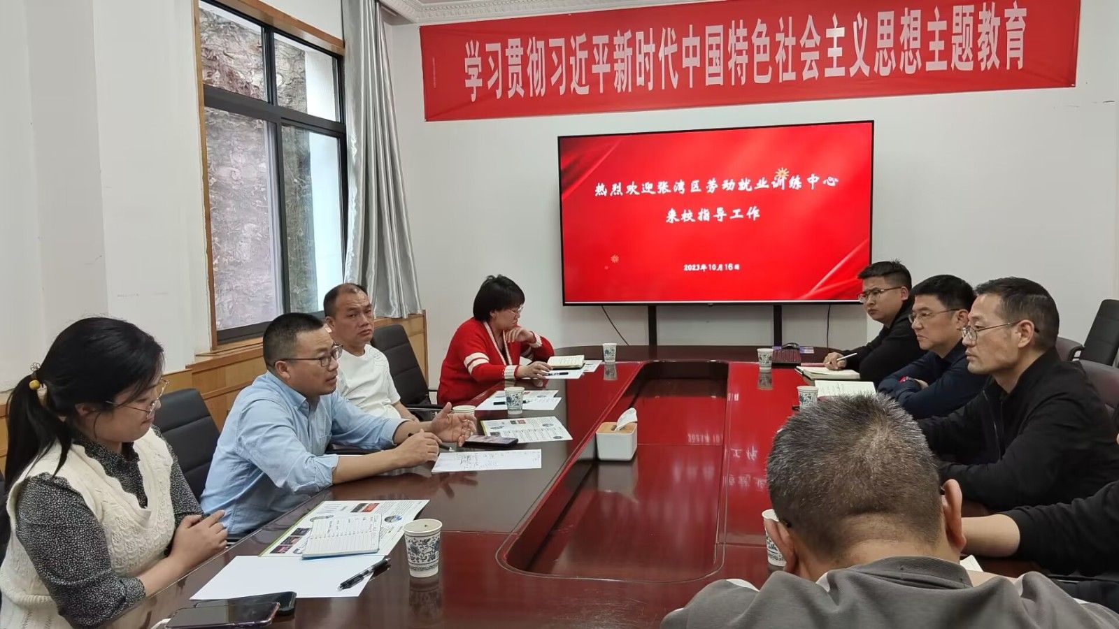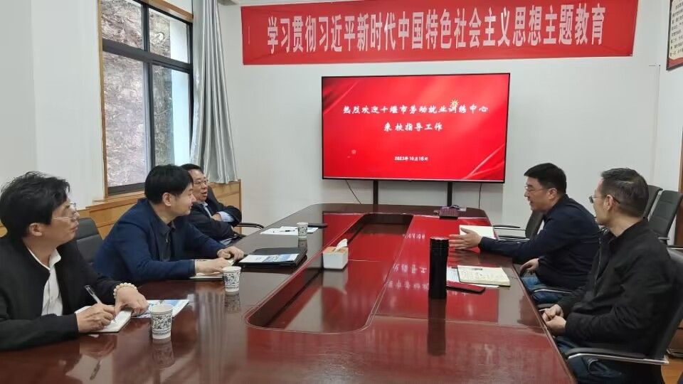 本网讯(文/丁嘉)10月16日下午,十堰市劳动就业训练中心主任陈少军、副主任张强、技能培训部主任杜文杰,张湾区劳动就业训练中心培训股股长林刚、办公室主任赵燕,十堰市智勇商务技能培训学校校长王志勇、办公室主任高芳芳一行7人来继续教育学院座谈交流,继续教育学院院长缪勇主持会议,副院长李秀刚及培训中心负责人参加座谈交流。