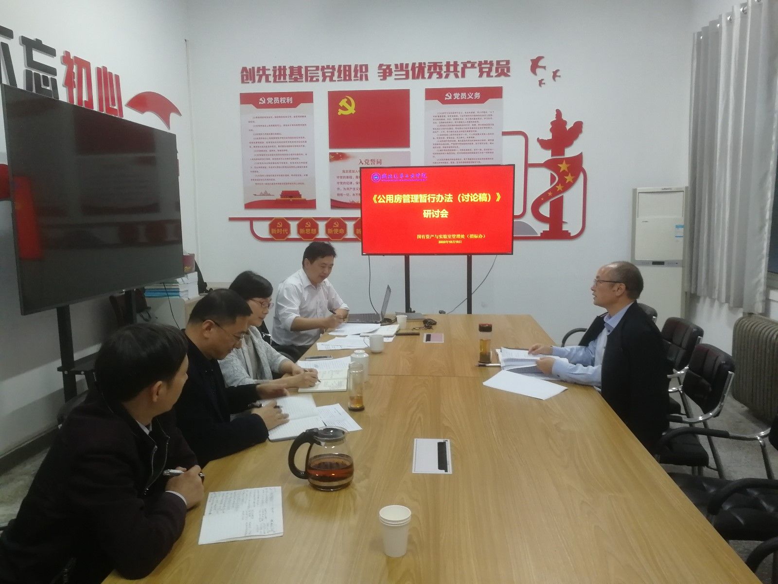本网讯(文 黄平/图 华文龙)10月18日下午,副校长张友兵到国有资产与实验室管理处参加我校公用房管理办法和实施细则制定工作研讨会,会议由国资处处长毕丽芳主持,国资处科级以上干部参加了研讨。