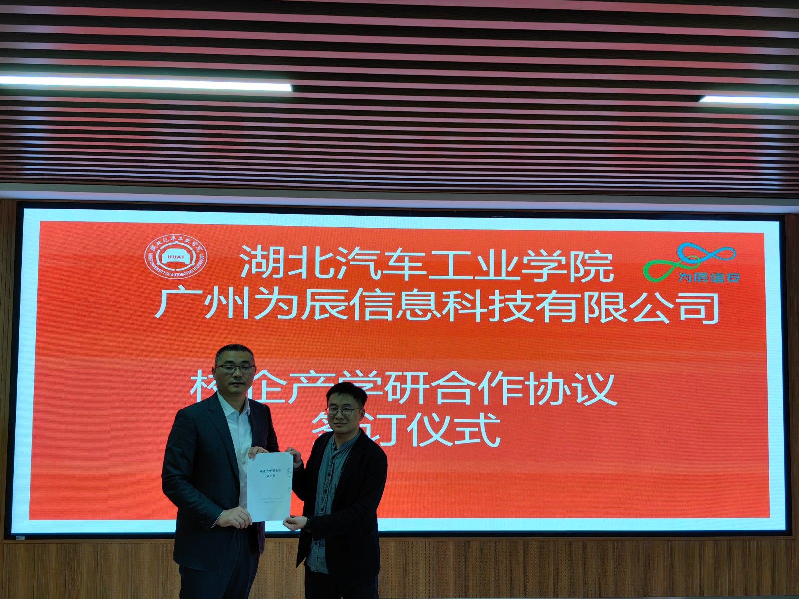 本网讯(文 王思山/图 曹举阳)10月19日下午,在汽车工程师学院智能科学与技术实验室,汽车工程师学院与广州为辰信息科技有限公司举行信息安全专业校企合作签约仪式,汽车工程师学院信息安全专业负责人王思山和广州为辰信息科技有限公司校企合作负责人龚畅参加了本次签约活动。