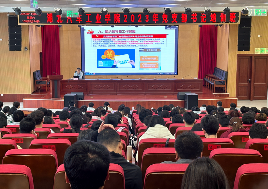 本网讯(文/图 张煜紫)为进一步加强基层党组织建设,提高党支部书记党务工作能力和水平,11月4日上午,学校在产教大楼四楼报告厅举办2023年党支部书记培训班,全校80余名基层党支部书记参加培训。培训班由组织部副部长李亚洲主持。