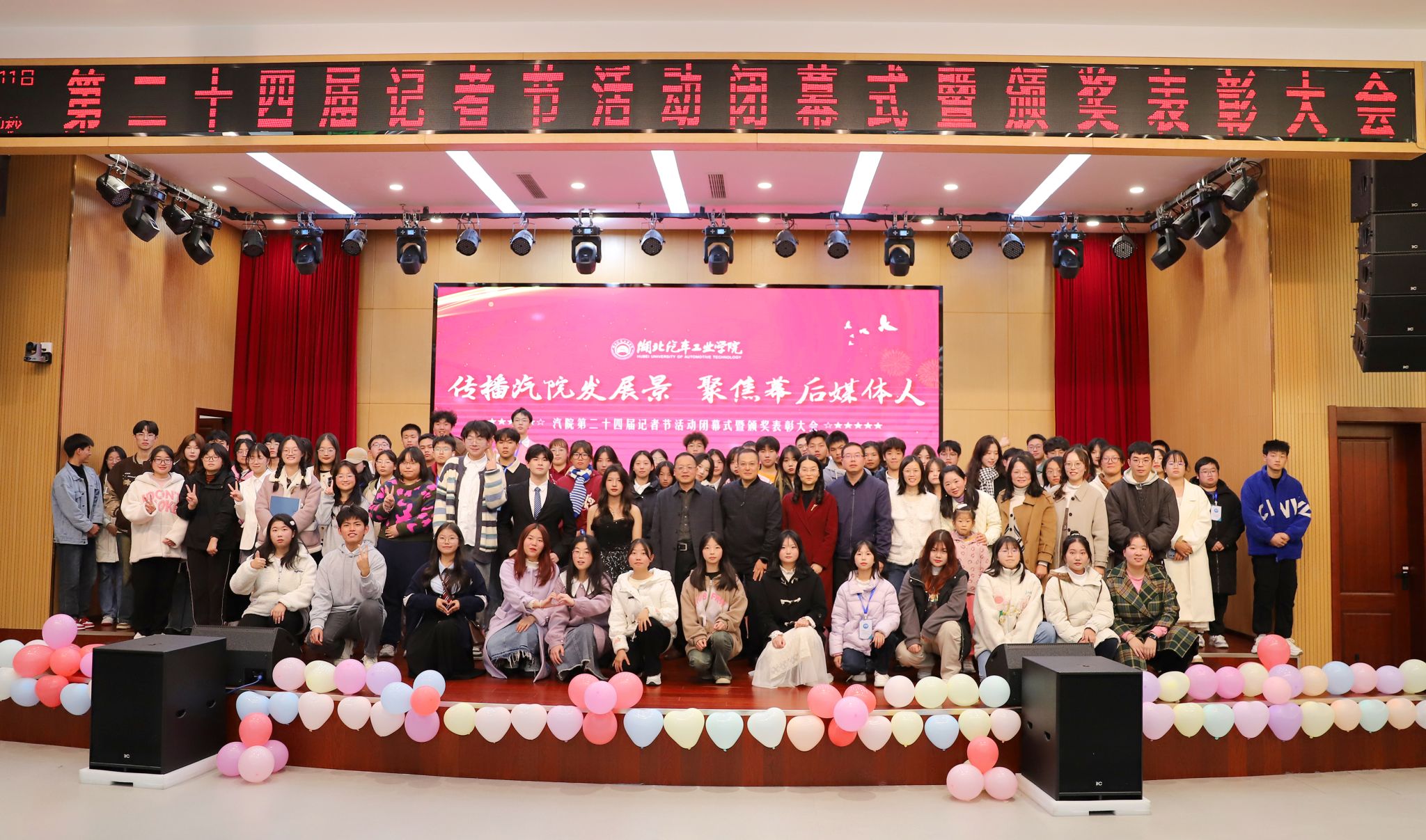 本网讯(文 邓玉洁/图 彭秀武)11月11日下午,我校全媒体中心主办的第24届记者节活动闭幕式暨颁奖表彰大会在产教大楼四楼报告厅举行,300余名师生欢聚一堂,共庆记者节,向学校广大新闻工作者、校园媒体人致敬。
