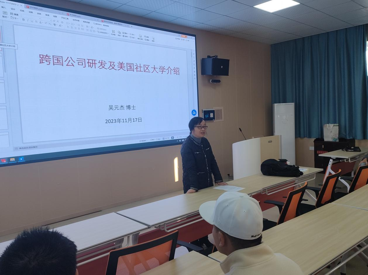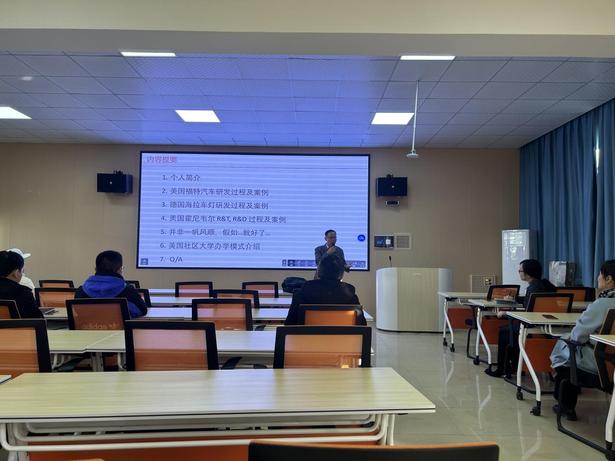 本网讯(文/图 李函)11月17日,东风讲坛第一百二十一讲开讲,美国DCP管理有限公司创始人,原湖北汽车工业学院汽车工程系系副主任、浙江大学机械能源学院副教授吴元杰受邀在汽车工程学院作“跨国汽车公司研发与美国社区大学介绍”报告。报告会由冯樱老师主持,各二级学院教师及研究生自愿参加。