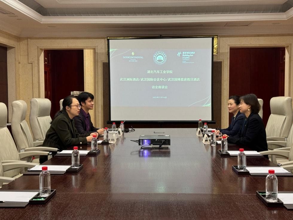 本网讯(文/汪士为)近日,经济管理学院生态文旅系系主任汪士为和专任教师何芸前往武汉洲际酒店,参加访企座谈会以及实习生分享会。此次活动旨在加强学院与企业之间的合作关系,以改进旅游管理专业学生的实习实训环节。