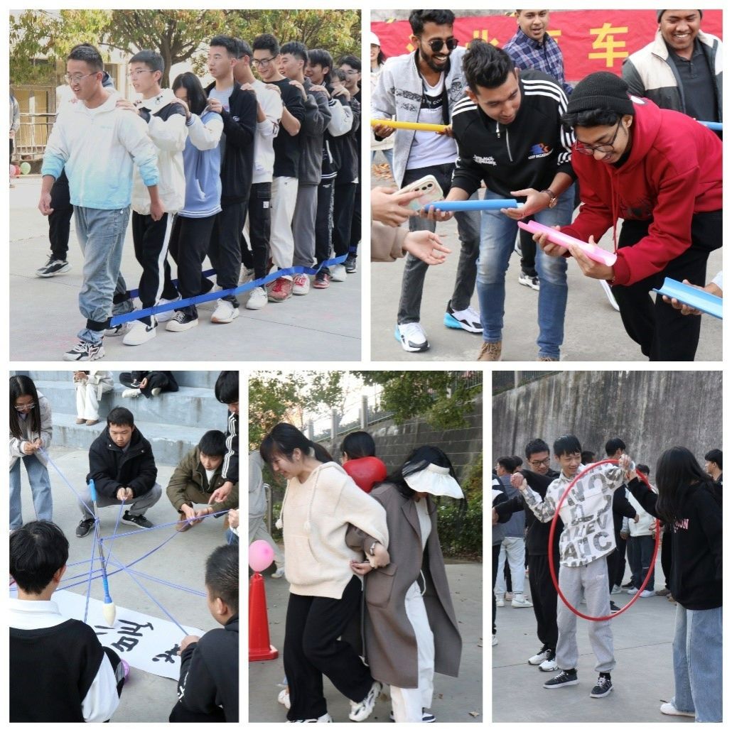 在本次运动会中,还有一支比较“特殊”的队伍——经济管理学院研究生留学生队。语言上的差异并没有打消他们的热情,在工作人员的讲解下,他们愉快地完成了各个活动项目。赛场上充满了欢声笑语,每位同学都在本次活动中得到了心灵的疗愈和滋养。