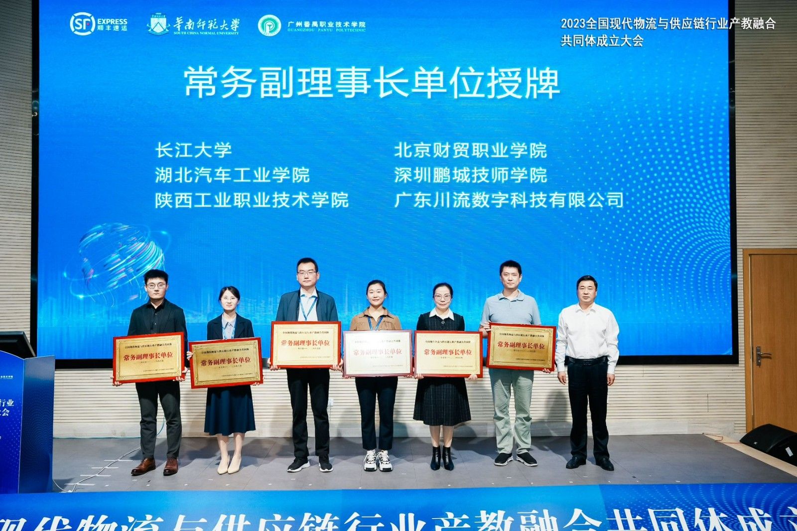 本网讯(文/邓晓君)近日,全国现代物流与供应链行业产教融合共同体成立大会在广州召开,我校荣任产教融合共同体常务副理事长单位。经济管理学院物流管理系陈彦交、彭连贵博士代表我校接受授牌并做交流发言。
